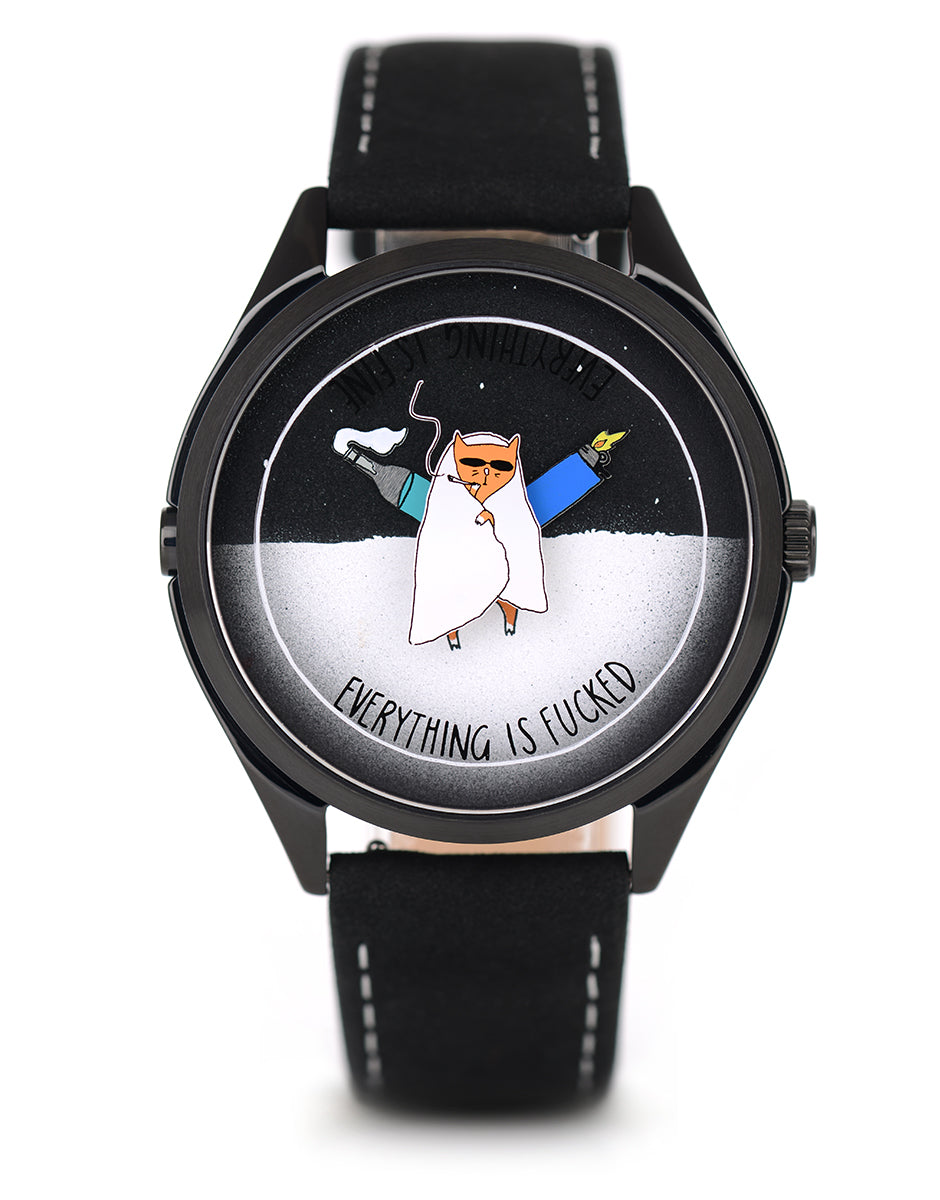 The design is a bold statement: 'Everything is fine… until it’s not.' It reminds us that time is always ticking, whether to ignite hope or embrace the mess.